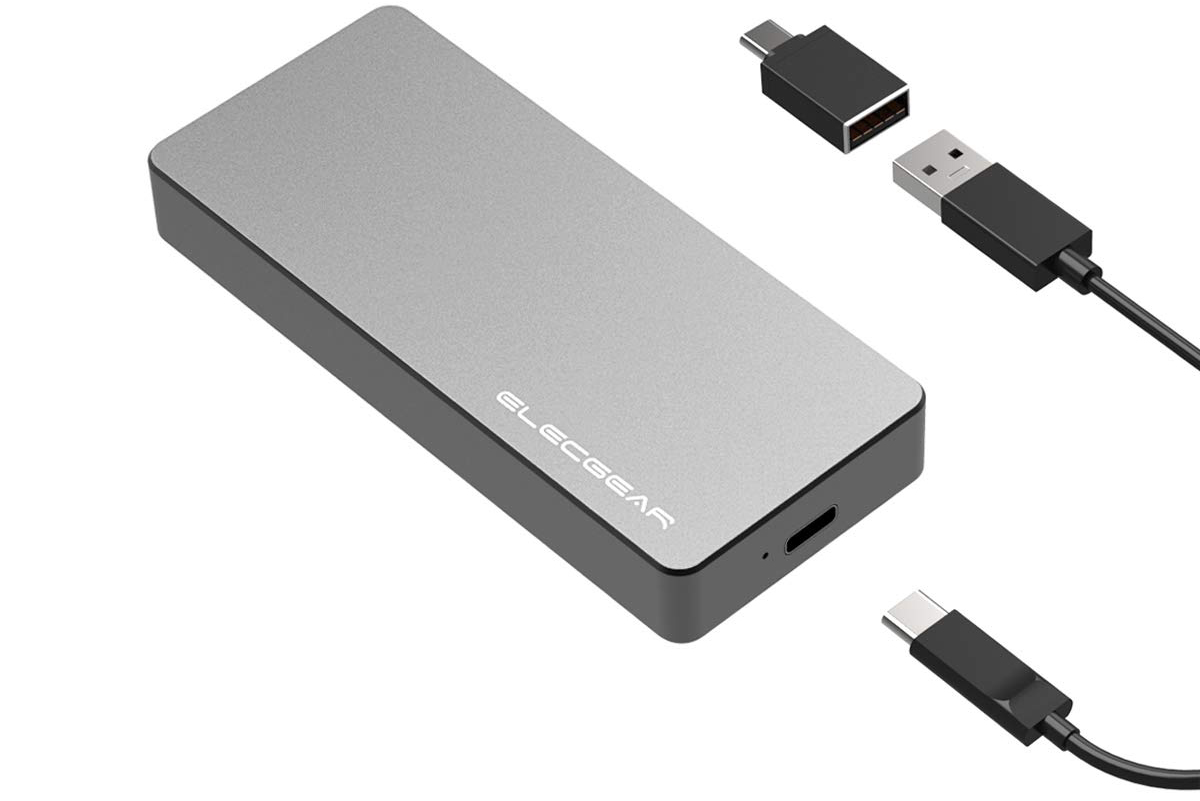 ElecGear EL-NV-C01 è un box esterno che si adatta al SSD NGFF “B Key” basato su SATA, supporta i moduli M2 NGFF nel fattore forma 2280, 2260, 2242 e 2230; questo adattatore portatile viene fornito con una cavo USB 3.1 Gen 2 Tipo C per permettere il collegamento tramite porta USB C.